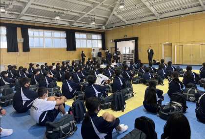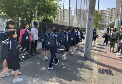 2年生が前日から活動している泉南市にある大阪府立海洋センターに向かいます。