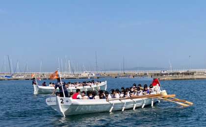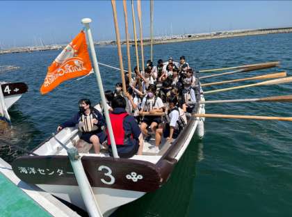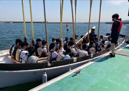 カッター訓練。掛け声を合わせ、元気に漕いでいます。