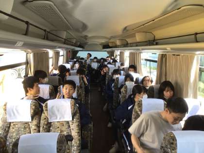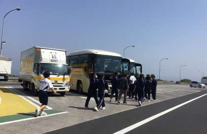 写真はトイレ休憩で立ち寄ったサービスエリアと車内の様子です。