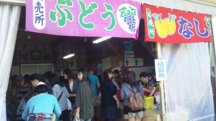 PTAみなさんは、ご家庭などへのお土産に「ぶどう」や「なし」など秋の果物を買っています。