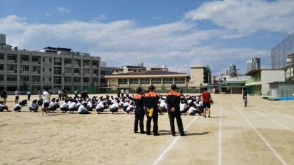 本日6限全校生徒で避難訓練を実施しました。