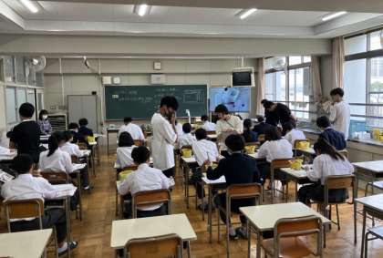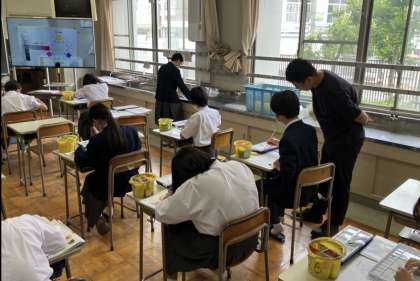 本校では昨年度から年間を通して研修授業を実施しています。今日は、理科と美術の授業で研修授業を実施しました。