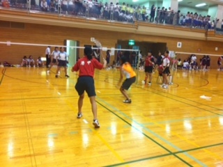 第一ダブルスは、相手がとても強かったのですが先ほどの試合とは違い、とてもいい雰囲気で、声もかけあいながらくらいついていました。結果は負けました。