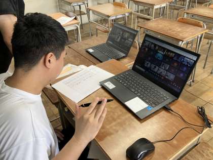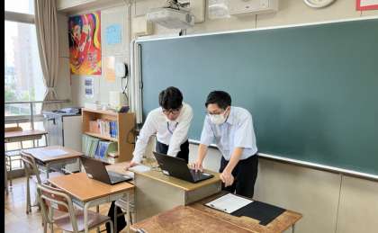 各学級の生徒たちはタブレットのクラスルームに8時15分頃より入り始め、8時半の朝学活開始時間までにはほぼ全員が入室していました。学活では今日一日のスケジュールの確認等を行っていました。