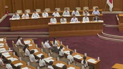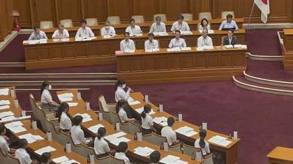 4年ぶりに開催されたおおさか子ども市会に港中学校を代表し生徒会役員の2名が参加しました。