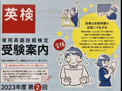 今日は英検の申し込み2日目でした。明日申込受付最終日となります。8時から8時20分まで玄関ピロティーで受付しております。