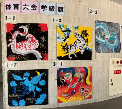 これらの作品は文化発表会後、螺旋階段に展示しております。