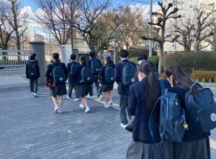 本日3年生は学年末テスト終了後、昼食のお弁当を食べ、注意事項を受け、志願書を提出するために出発しました。