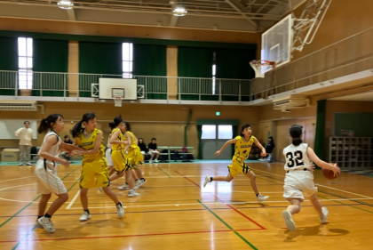 試合は格上の天満中学校に惜敗しましたが、オフェンス・ディフェンス両面において好プレーが随所に見られました。また、1試合を通して2名しかいない2年生が中心となり、最後までチームで声を掛け合い、諦めることなくプレーし続ける姿もあり、これまでの練習の成果を見せてくれました。