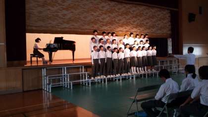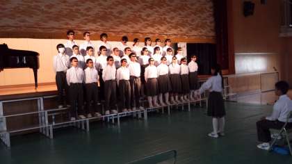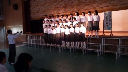 最優秀賞は、1組 選択曲「そのままの君で」をしなやかな動きの指揮者に合わせ見事に心を一つにして歌いました。練習の時からビクトリーを意識して頑張りました。文化祭当日も代表として歌っていただきます。2組は大きな口で上手に歌い切った男子の光景に胸を打たれました。普段からとても仲の良い笑顔いっぱいのクラスの様子が歌「この星に生まれて」で伝わりました。3組は歌唱力でいうとトップでしたと大利先生の寸評があるほどハーモニーもよく「未来へのステップ」を響かせてくれました。