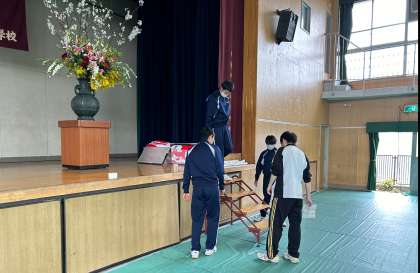 本日4/2は明日の入学式に向けての準備が、2,3年生の生徒たちによって行われました(写真)。