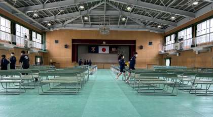 保護者の皆様におかれましても、上履き及び下靴用袋をご持参のうえ、9時40分ごろまでに体育館内にお入りください。