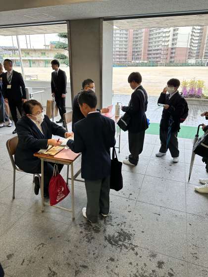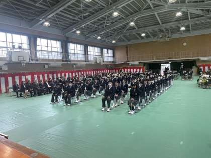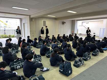 クラス発表を見た後、新ピロティで入学式の流れなどを確認し、式場に入場しました。