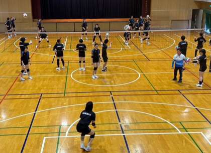 現在Asueアリーナで行われているバレーボールの黒鷲カップに出場している、Vリーグ所属の【岡山シーガルズ】が5月3日と4日の二日間、本校の体育館で試合前練習を行いました。