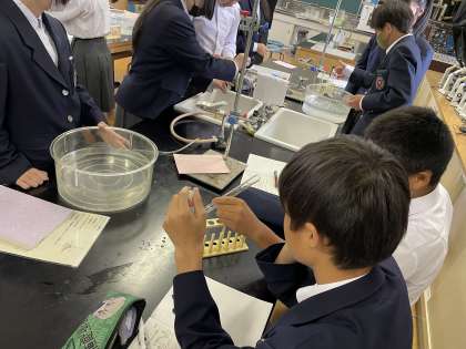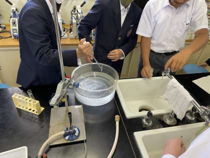 先週、今週の理科の授業で「炭酸水素ナトリウムの加熱実験」と「水の電気分解」の実験を行いました。