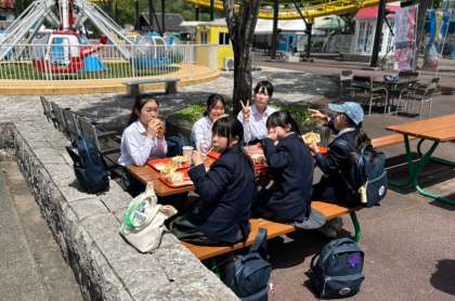 姫路セントラルパーク。みんな楽しんでいます。まずは腹ごしらえからの班もありました。