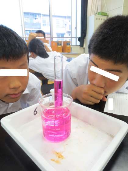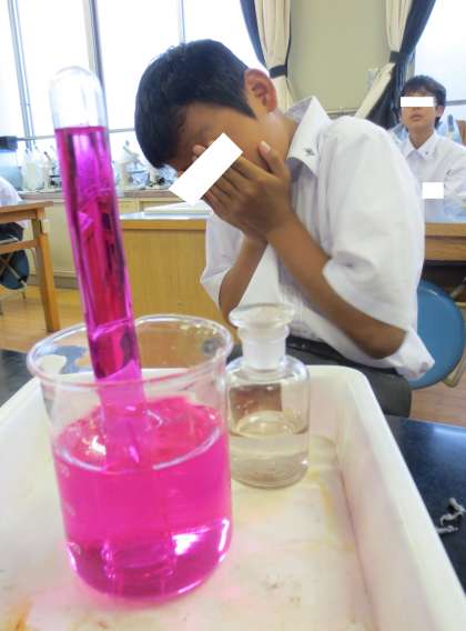 前回の「アンモニア実験」を生徒たち自身も行いました。
