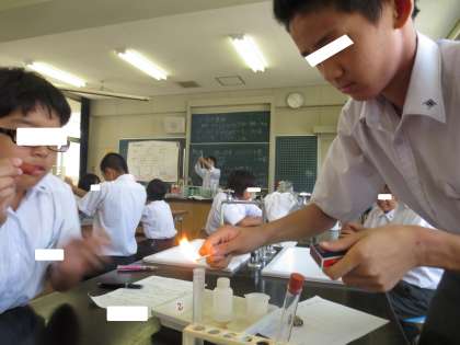 そして、水素が集まった試験管の口にマッチの火を近づけると…