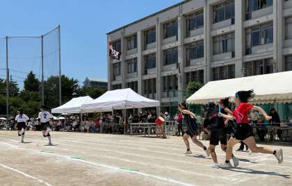 文化部のレースは美術部が優勝しました。男女それぞれの運動部のレースでは、陸上部が男女ともに貫禄の走りと華麗なバトンパスと披露し優勝しました。