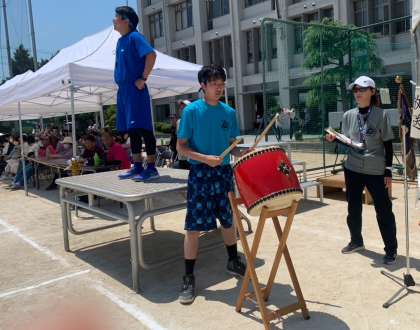 金城先生の太鼓が打ち鳴らされ、学年の入退場が行われました。