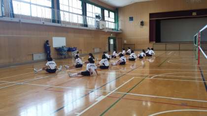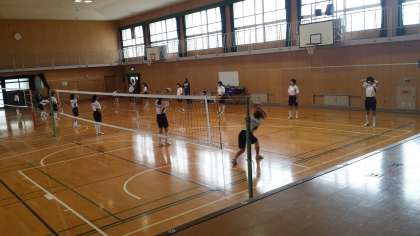 球技 バレーボールを強くボールを打つことも出来る。パスが長く続くように頑張っていました。そして、みんな楽しく授業ができており協力もしっかりできていました。
