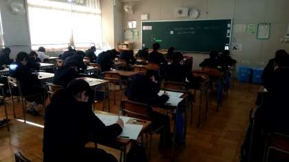 現在、港中学校は明日(2日)まで期末テスト中です。