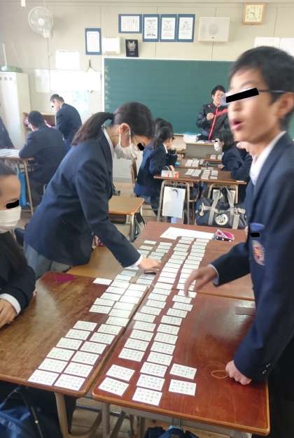 百人一首の練習をしているクラスがありました。