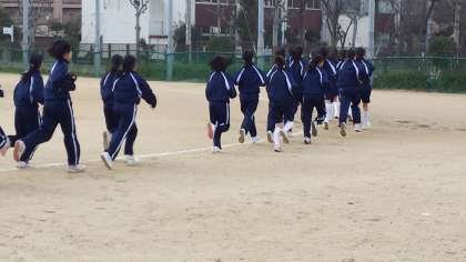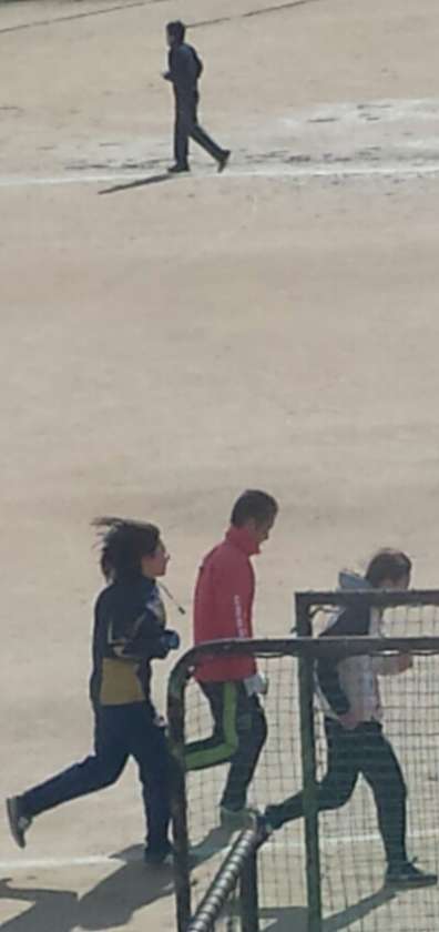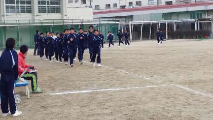 寒さがとても厳しくおまけに強風、あまり記録は望めません。先生もグランドで待機しては、授業また待機の繰り返し、あまりにも寒いので走り出しました。