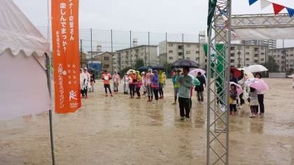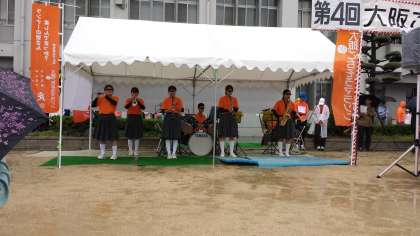 港中学校、吹奏楽部が演奏してムードを高めています。