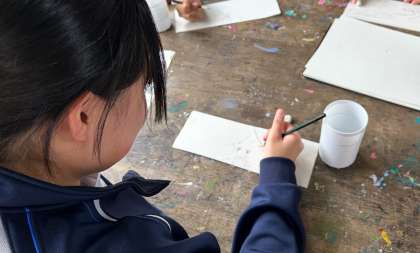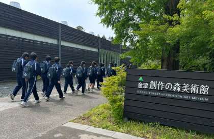 サンドブラストを作る班は、金津創作の森美術館の施設内にあるガラス工房にやって来ました。
