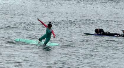 悪戦苦闘ながらなんとかボードに乗れるようになってきました。