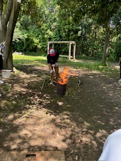 まず、インストラクターさんの指導の下、火起こし体験をしました。