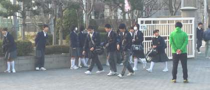 正門では、防寒具類を外しています。まだまだ寒いですが今日も楽しくいろんなことを学んでください。
