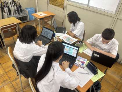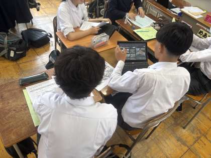 3年生は大阪・関西万博への校外学習に向けて、万博(予約パビリオンなど)の紹介を集会にて行い、班ごとに分かれて、会場内での行動計画を立てました。