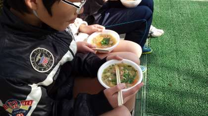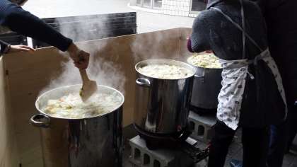 お変わりもしました。おいしい、ありがとうございます。さわやかな挨拶も飛び交う光景に感涙するPTAの皆さん。