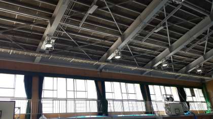 体育館天井工事、足場撤去される