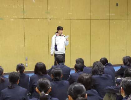 おはようございます。今日の集会では、昨年まで英語の授業と担任をしてくださった亀谷先生からお便りを皆さんに紹介しました。学校を離れてもみんなの成長に期待をされている様子がうかがえます。もうすぐ3年生です。最高学年という自覚をそろそろ準備してください。