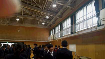 体育館で全校集会(朝礼)