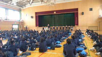 3月末日をもって新たな新天地へ旅経立つ先生方の紹介とひと言コメントをいただきました。また、感謝の意を込め、花束もお渡ししました。