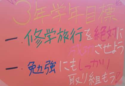 学級委員長会で話し合った3年生になっての目標が貼られていました。