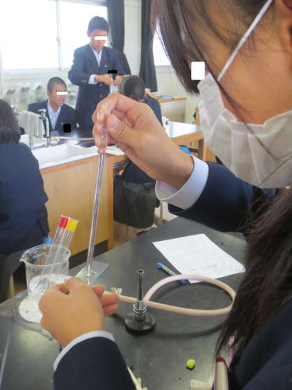 この化学分野のはじめに「ガスバーナーの使い方」を学習した1年生。