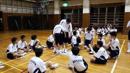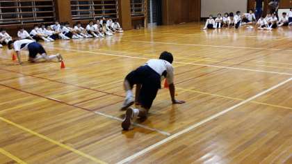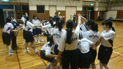 女子、人間知恵の輪。絡まった腕をほどいて、1つの円になります。