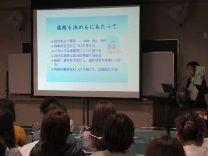 最新の入試情報等をパワーポイントと資料を用いて説明しました。