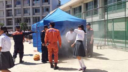本日5時間目に港消防署の方にお越しいただき、避難訓練をしました。火災の放送から、運動場へ出てきて点呼完了までの時間は、4分20秒でした。火災が起きたらまずは、避難をすること。要点は、3点あります。一、しゃべらない。二、走らない。三、押さない。しゃべると先生の指示の声が聞こえません。走ったり、押したりすると、次々と倒れる恐れがあります。