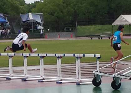4種競技100mハードル、自己ベスト(二人とも)雨の中頑張ってます。
