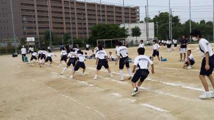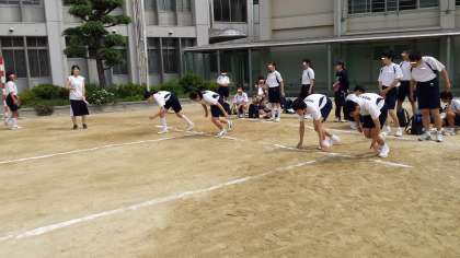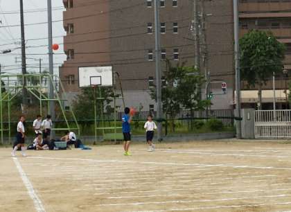 グランドにおいては、50メートル走、立ち幅跳び、ハンドボール投げでも全力で記録に挑戦しました。測定終了後、50メートル6秒8までの生徒で、記録会を行ったところ、6秒3の超好記録が出ました。ハンドボール投げでも34メートルと素晴らしい記録が出ました。