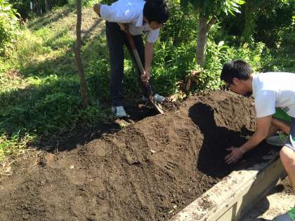 肥料をまいてかまぼこの形に土を整備しました。