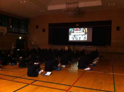 2日目は、体育館でSNSや出会い系サイトの怖さについて