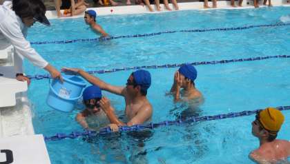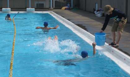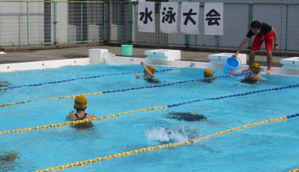 プールの底にある色とりどりのカラーコインを拾い集め、集まった枚数を競いました!