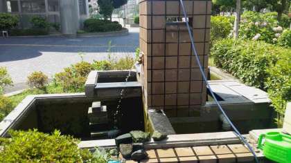 朝から二時間かけて教職員で大清掃をしました。カダヤシの稚魚が一杯で亀も喜んでいました。